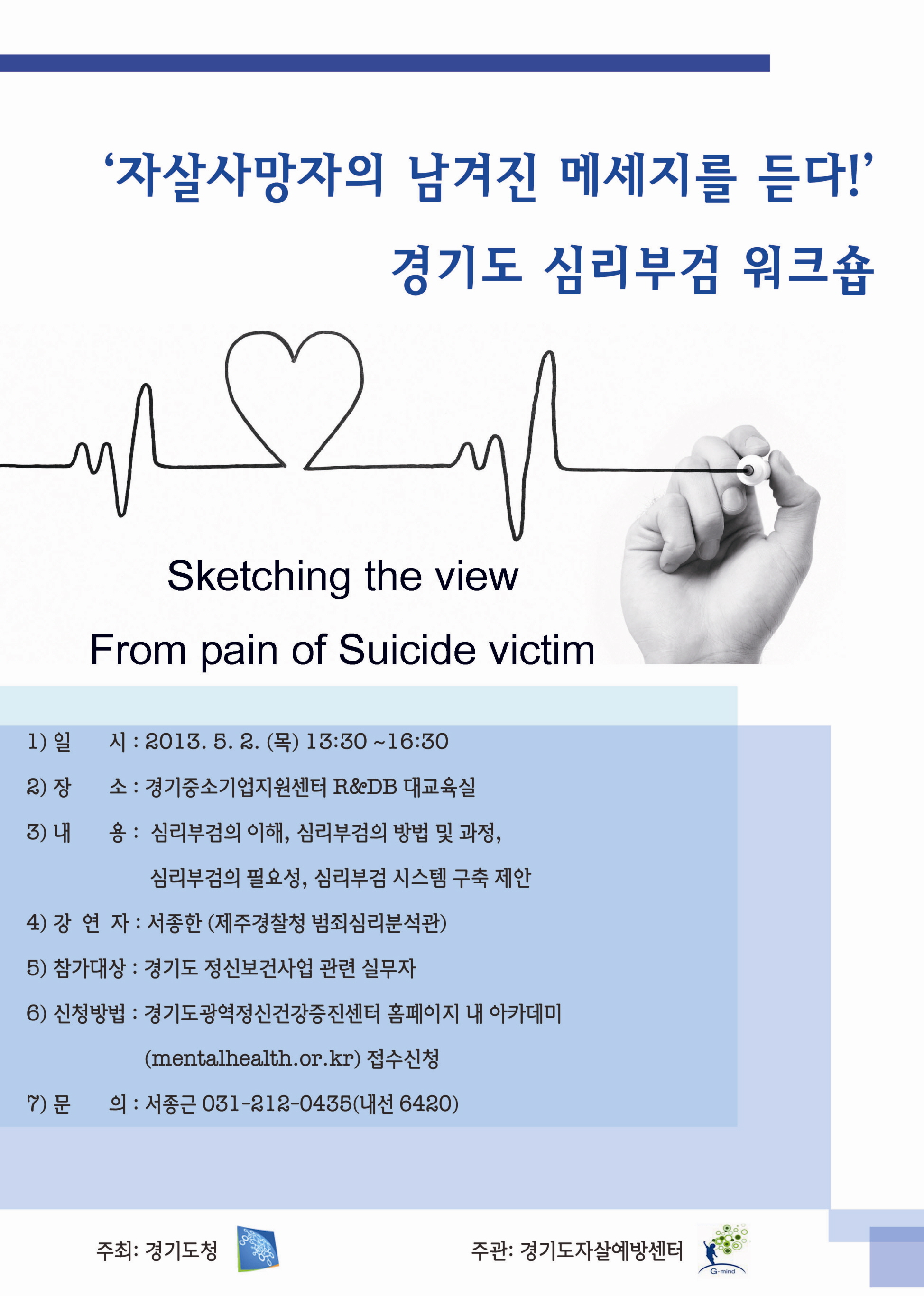 경기도 심리부검 워크숍 개최하고자 하오니 관심 있으신 분들의 참여를 바랍니다.