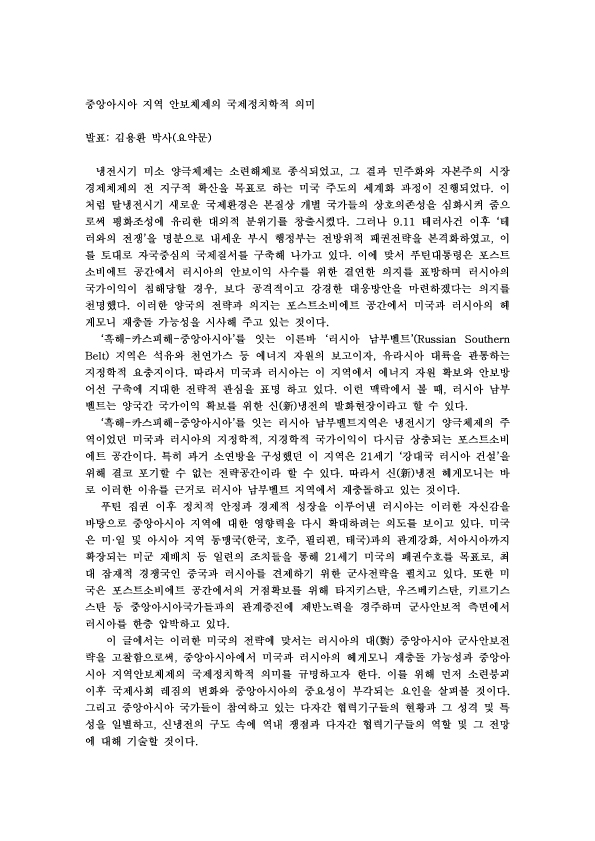 제73차 중앙아시아 지역 안보체제의 국제정치학적 의미 외 1