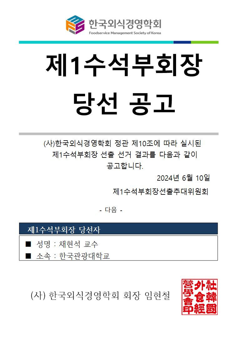2024년 제1수석부회장 당선 공고