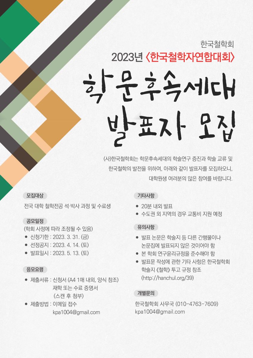 [한국철학회] 2023년 한국철학자연합대회 학문후속세대 발표 공모