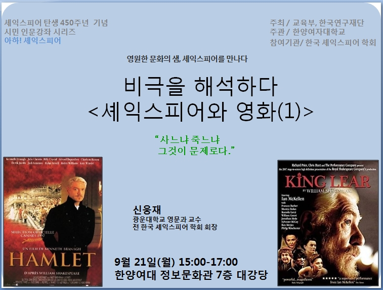 셰익스피어 시민인문강좌 9월 강좌(장소: 한양여대)-