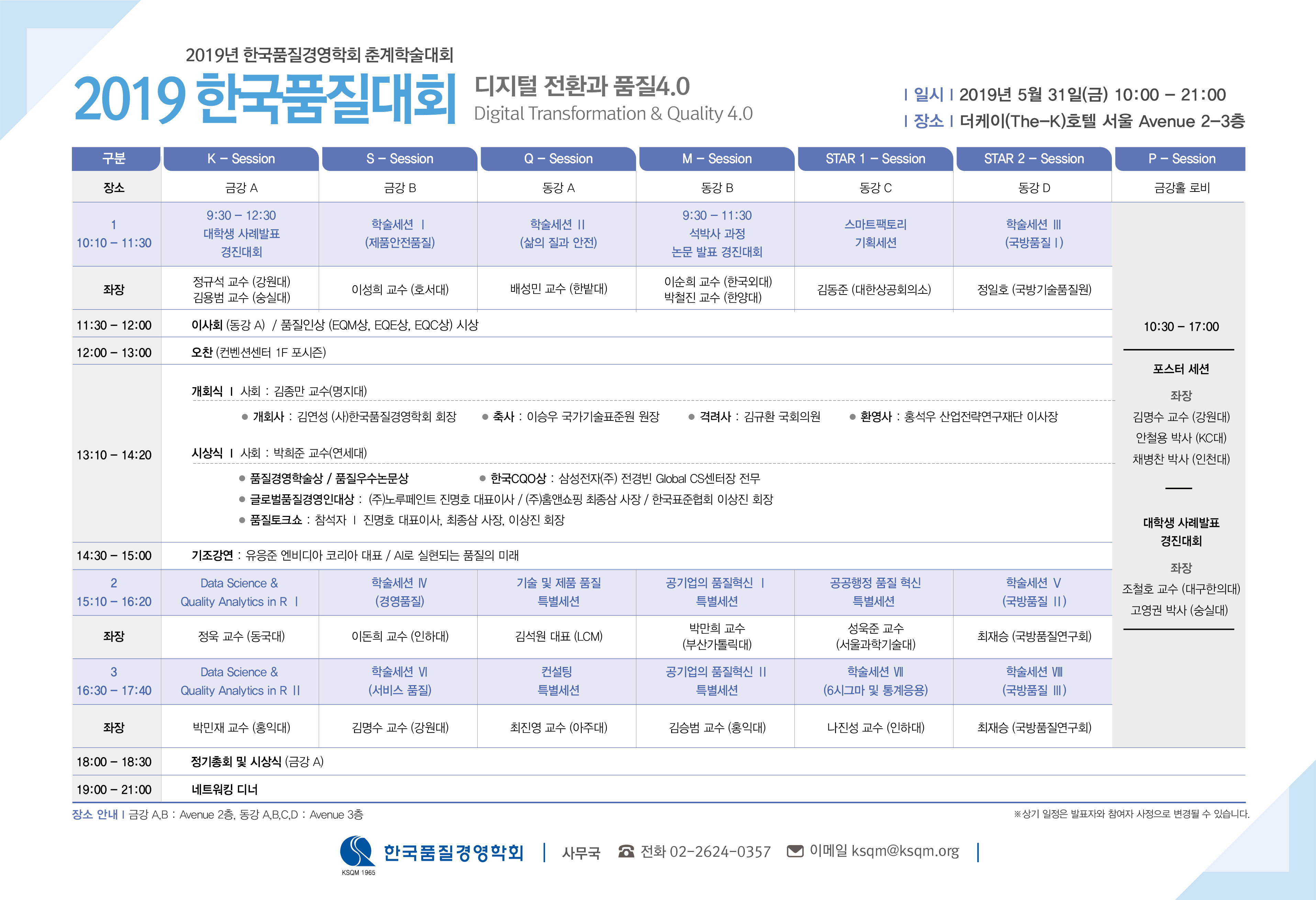 2019년 춘계 학술대회 주요일정 및 전체일정