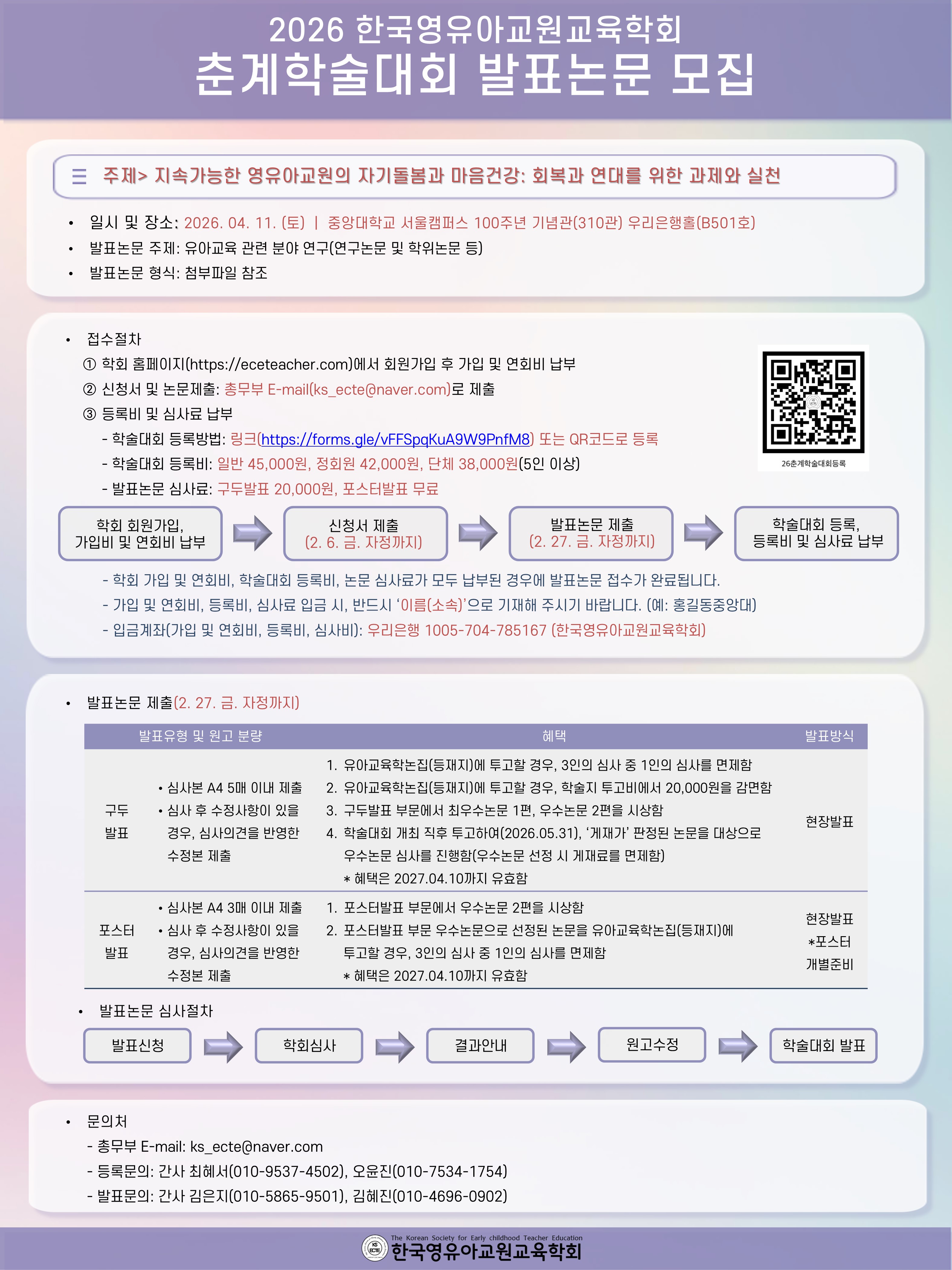 [한국영유아교원교육학회] 2026 춘계학술대회 원고모집 및 일정안내
