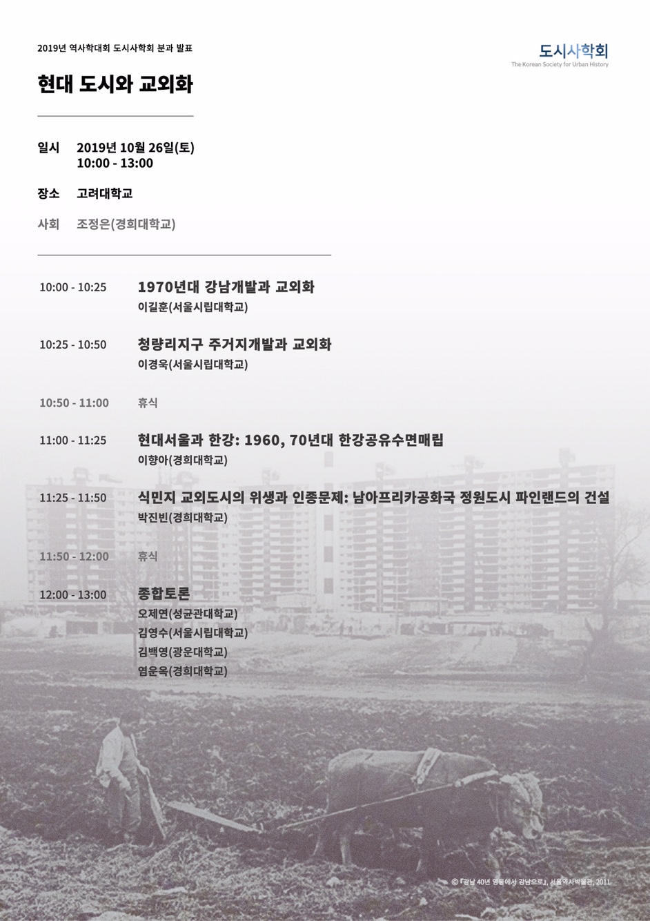 오제연(성균관대학교) 김영수(서울시립대학교) 김백영(광운대학교) 염운옥(경희대학교) |
