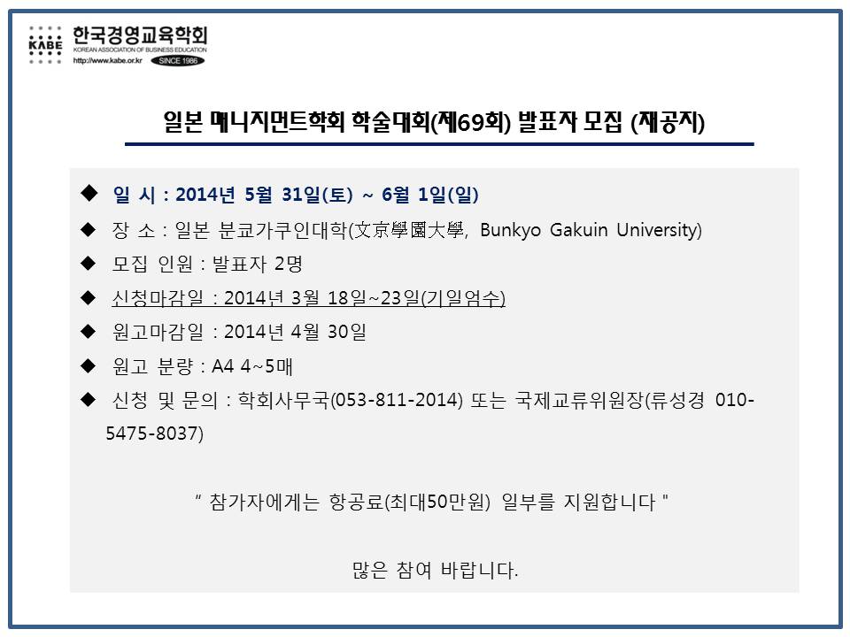 2014 일본 매니지먼트학회 학술대회(제69회) 발표자 모집(재안내)