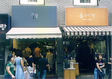 2004년 9월 15일, 강남 중학교 '사회 참여 체험 학습의 날'에 인사동에 있는 거리 간판의 모습. '가람'은 알겠는데, '봅데강'이 뭘까 한참 생각했지요. 그런데 현진이가 조사를 잘 해 줘서 뜻을 알 수 있었답니다. '봅데강'은 제주도 말로 '보셨습니까?'라는 말이라는군요. 감물 옷을 파는 가게인데 제주도 옷이라서 그렇게 지었다고 하네요.