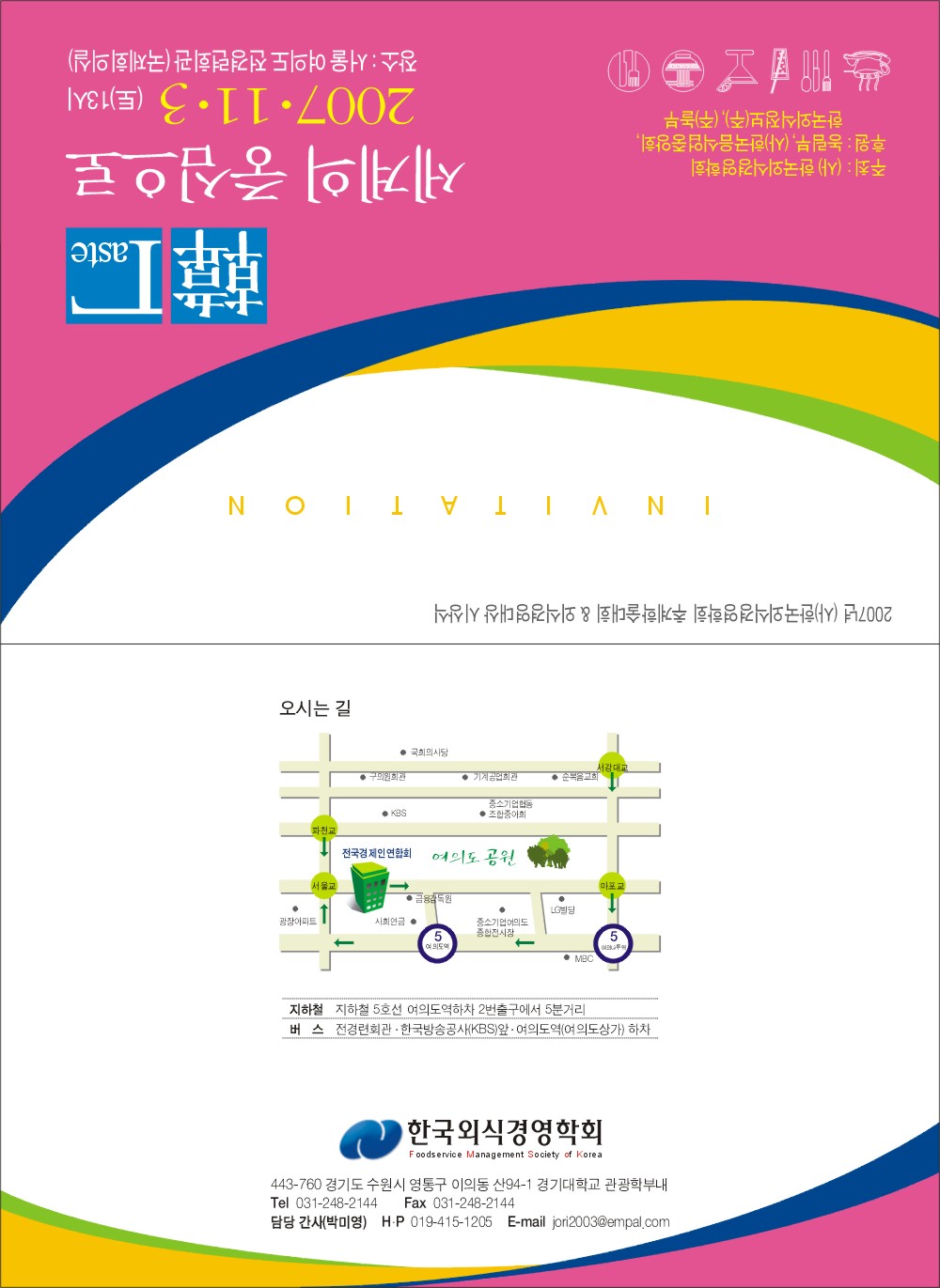 (사)한국외식경영학회에서는 2007년 추계학술대회를 다음과 같이 개최합니다.