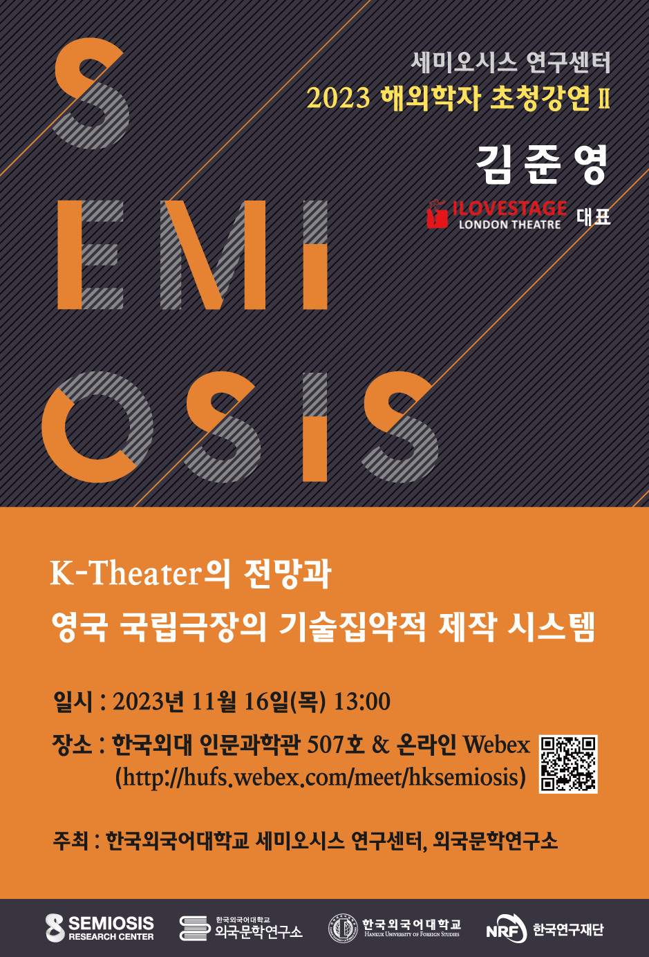 ■ 장 소: 한국외대 인문과학관 507호 & 온라인 Webex (링크: https://hufs.webex. com/meet/hksemiosis)