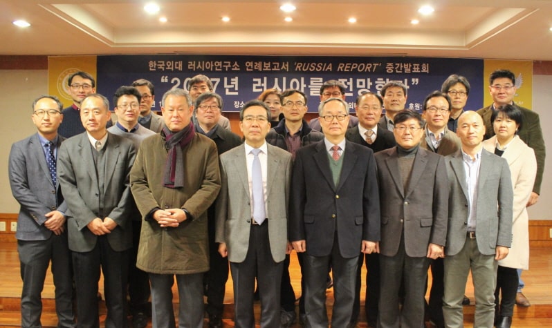 2017년 1월 12일(목) 우리연구소는 한국외대 서울캠퍼스 교수회관 2층 강연실에서 연례보고서 RUSSIA REPORT 발행의 일환으로 “2017 러시아를 전망한다” 제하의 국내학술대회를 개최했다. 우리연구소의 2017년 첫 학술행사로서 본 회의에는 러시아 전문가와 학문후속세대 등 총 80여 명이 참석하여 성황을 이뤘다.