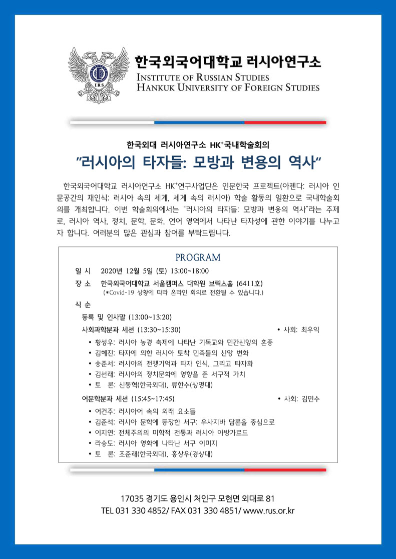 한국외대 러시아연구소 HK+ 국내학술회의 안내