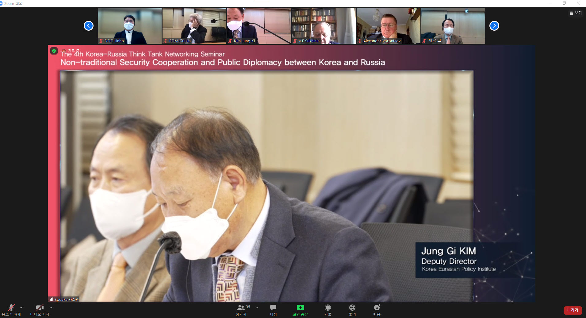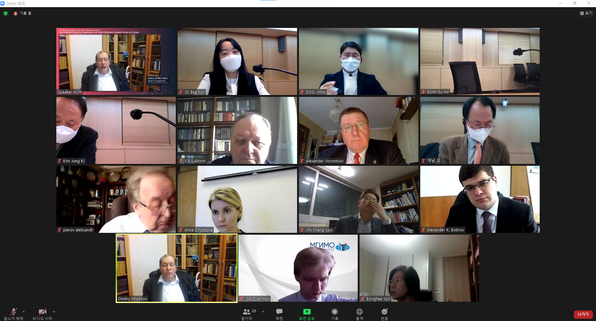 그 네 번째 행사로 모스크바 국제관계대학교 (MGIMO)와 공동으로  '한러 비전통 안보협력과 공공외교 '라는 주제로 세미나를 진행하였다 . 12월  9(), 한양대학교 국제관  6층 화상회의실에서 진행된 이번 학술 컨퍼런스는 제 1세션에서  한러 비전통 안보협력 과 제 2세션  팬데믹 이후의 한러 공공외교 라는 주제로  18명의 러시아와 한국의 전문가들이 참여하였다 .
