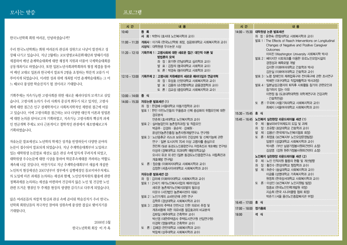 * 한국노년학회 2006년도 춘계학술대회 *