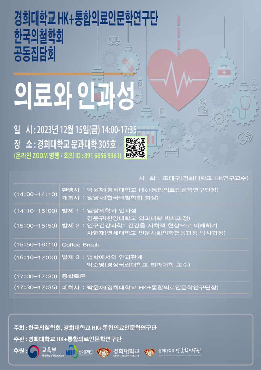 ▣ 경희대학교 HK+통합의료인문학연구단&한국의철학회 공동집담회