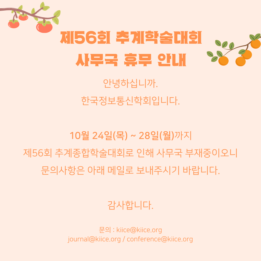 2024 추계종합학술대회로 인한 사무국 부재 안내(10.24-10.28)