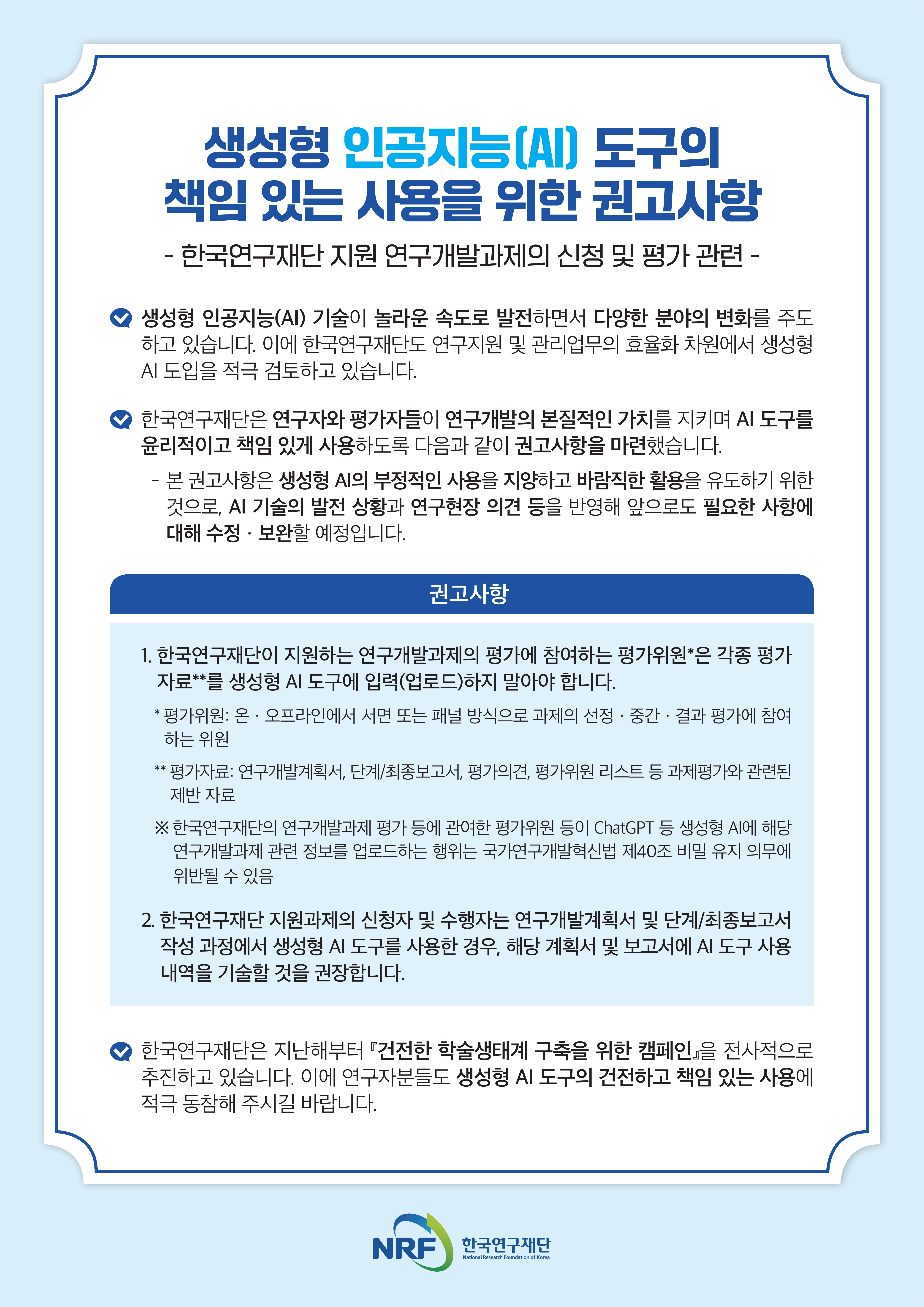 건강한 학술연구 생태계 조성을 위한 책임 있는 AI 도구 활용 문화 조성에 있어