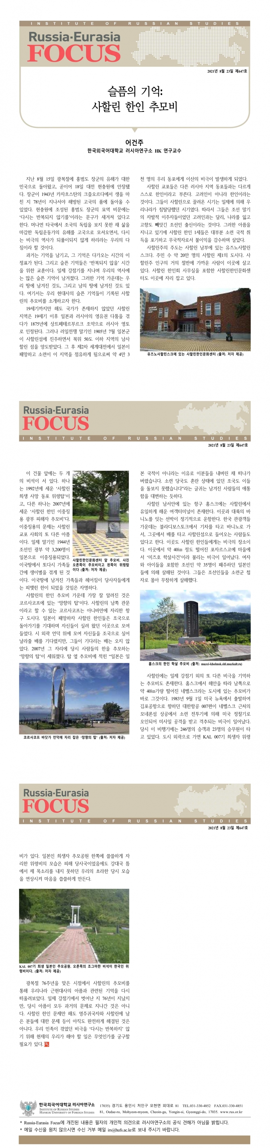 제647호 슬픔의 기억: 사할린 한인 추모비