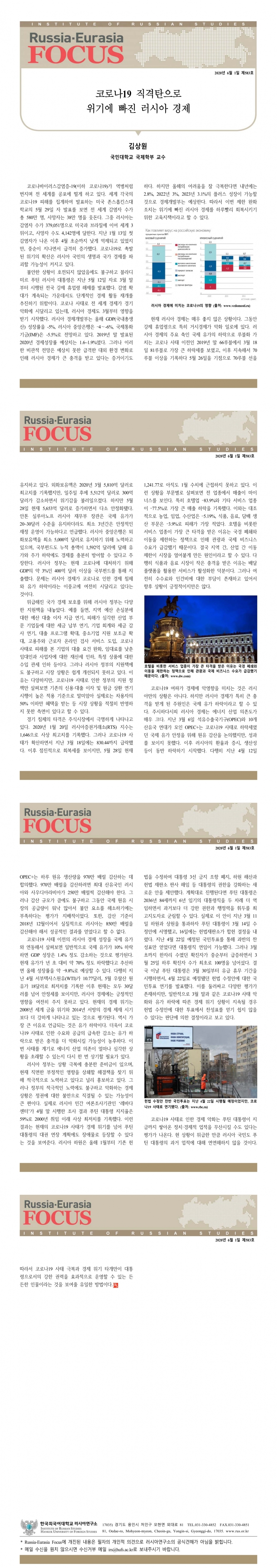 제583호 코로나19 직격탄으로 위기에 빠진 러시아 경제
