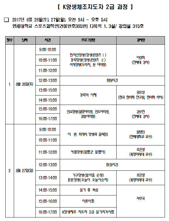 K 양생체조지도자 2급과정 수업계획서