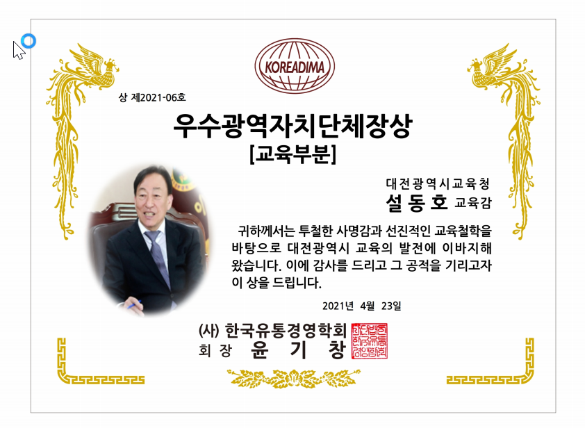 - 우수광역자치단체장상(교육부분): 대전광역시 교육청