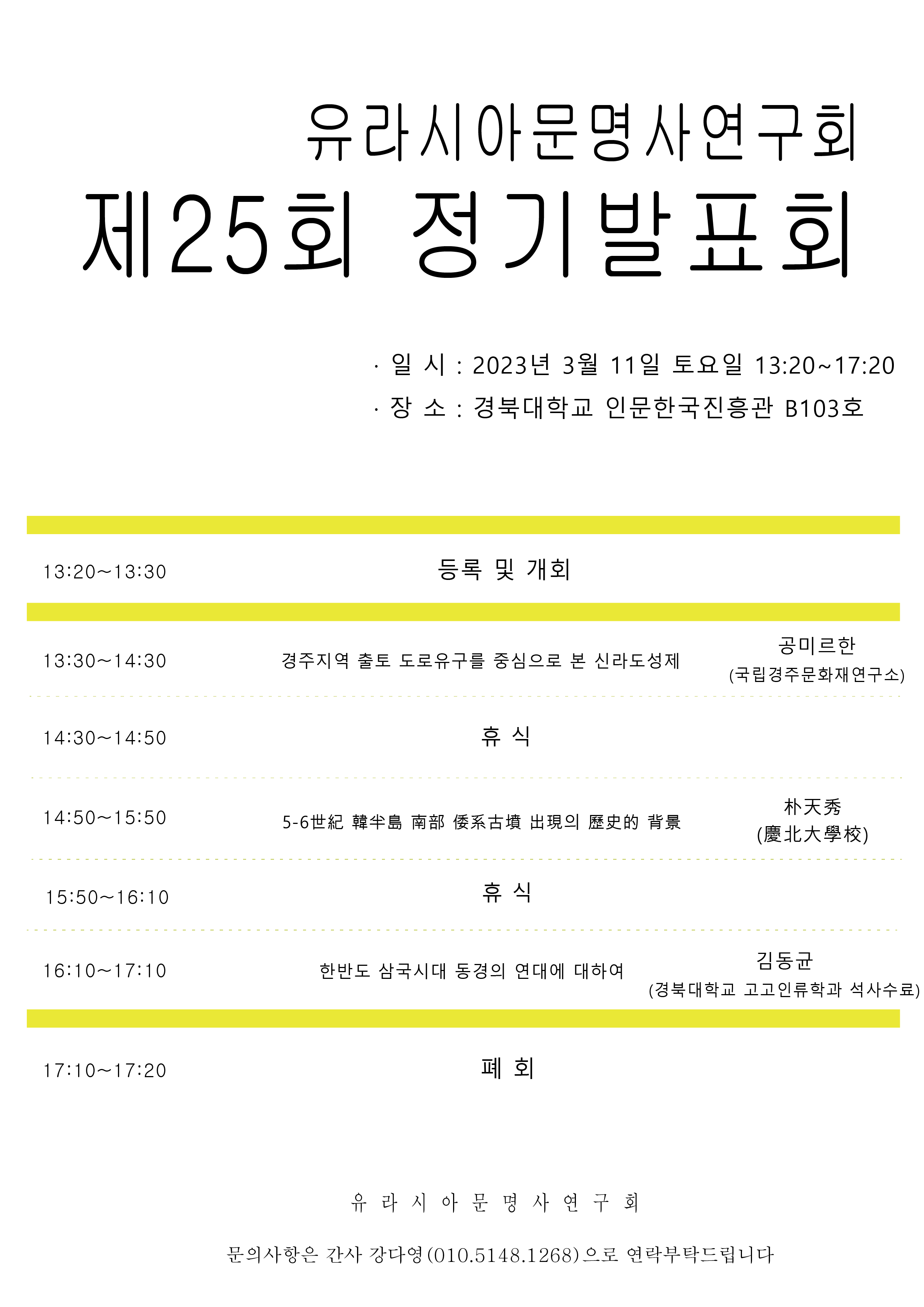 유라시아문명사연구회 제25회 정기발표회 안내