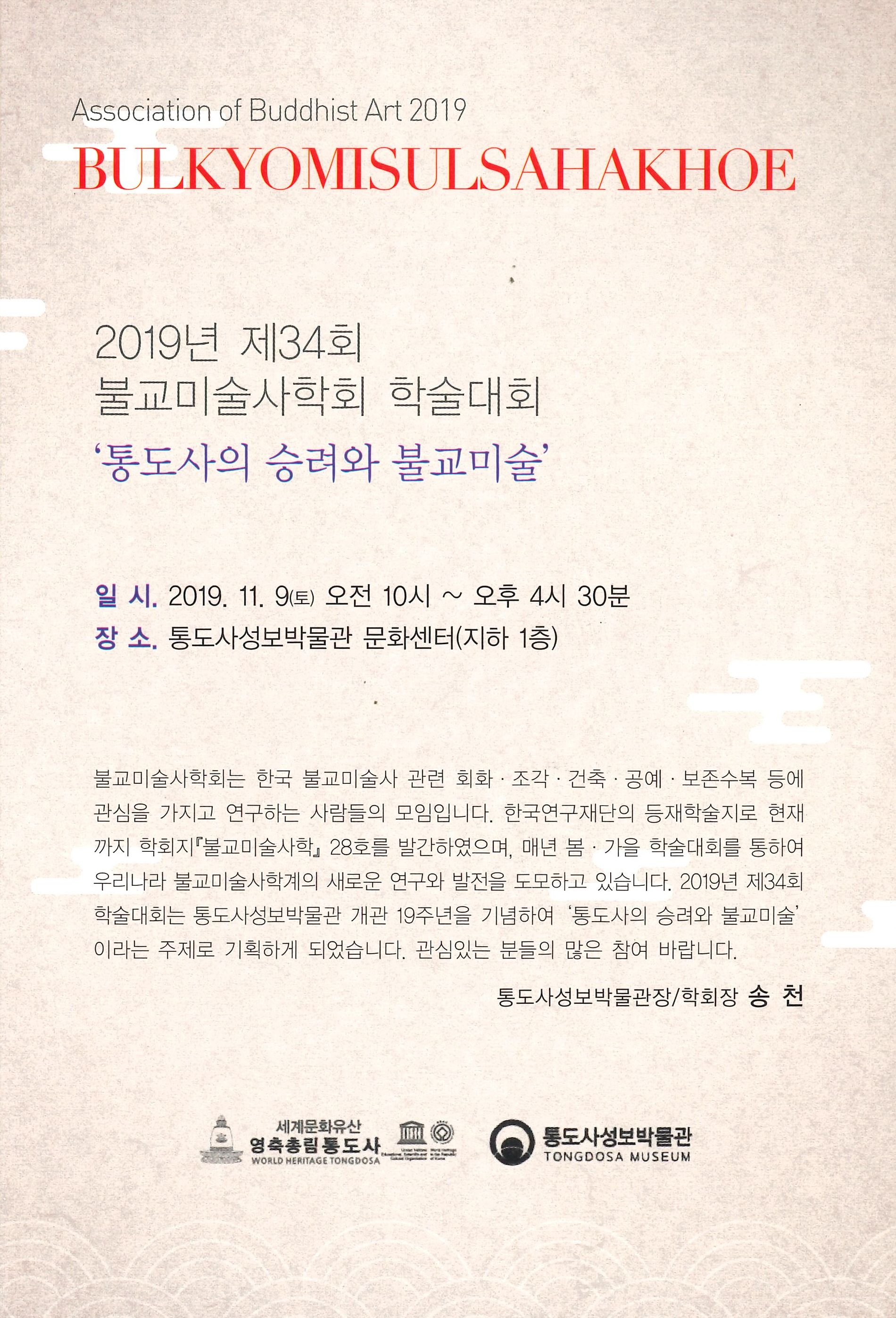 제34회 불교미술사학 추계학술대회가 다음과 같이 개최되오니 참고하여 주시기 바랍니다.