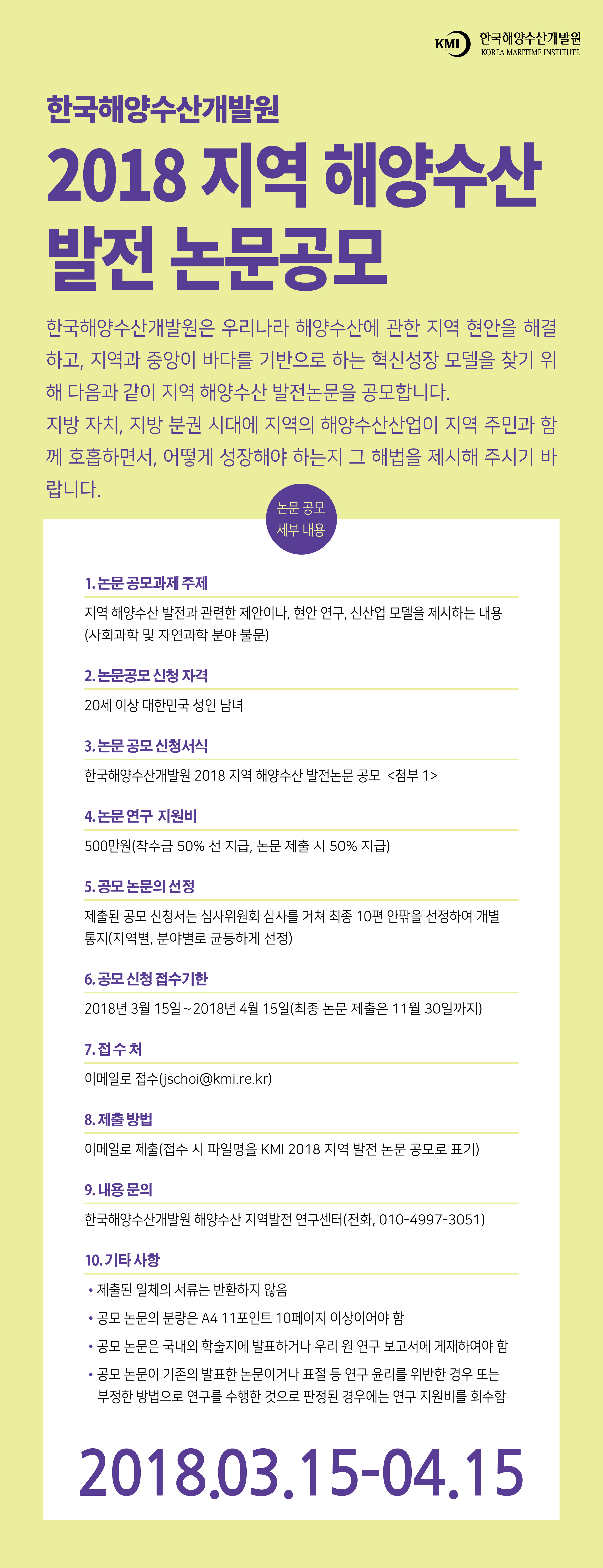 6. 공모 신청 접수기한 : 2018년 3월 15일 ~ 2018년 4월 15일(최종 논문 제출은 11월 30일까지)