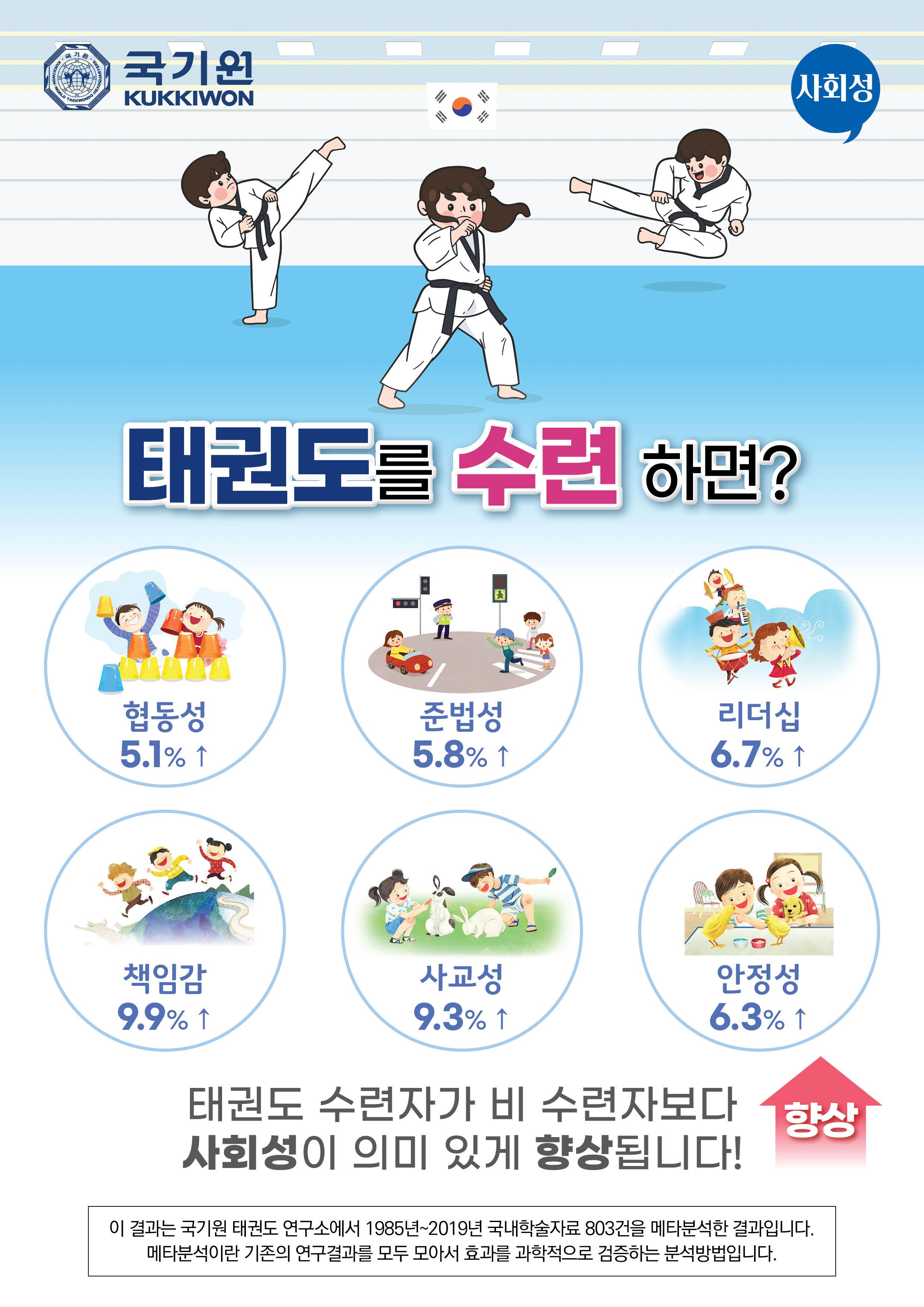 태권도를 수련하면 사회성이 개선된다는 연구결과입니다.
