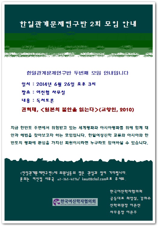한일관계문제연구반 2회 모임 안내