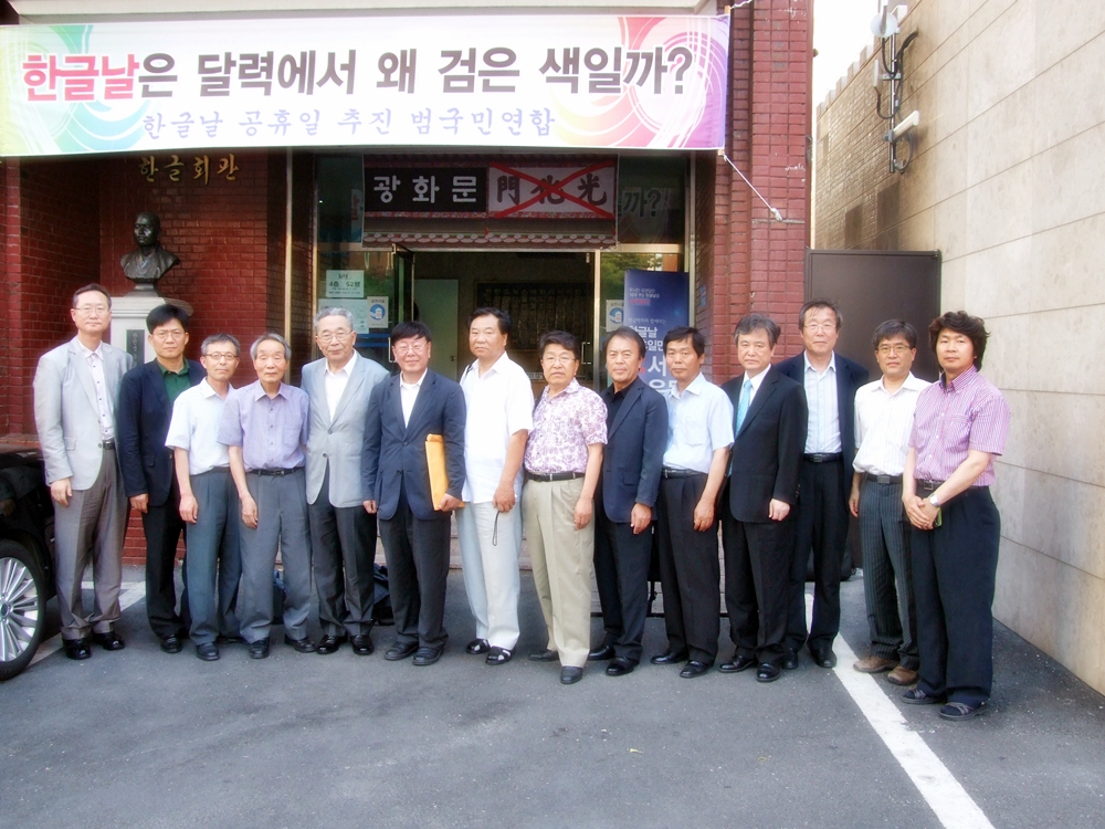 2012년 6월 20일(수) 오후 4시부터 한글학회 회의실에서 있은 '한글학회 지회장 모임'을 마친 뒤 본관 앞에서 찍은 기념 사진.