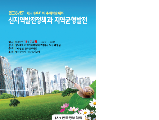 한국정부학회에서는 2008년 11월 7(금) 기획주제인 '신지역발전정책과 지역균형발전 '을 가지고 추계학술대회를 개최하고자 합니다.