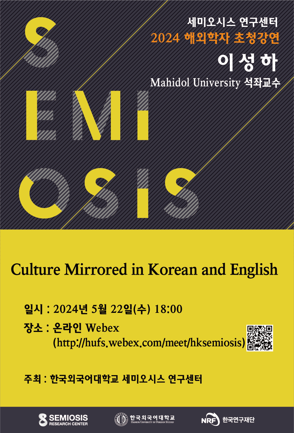 [한국외대 세미오시스 연구센터] 2024 해외학자초청강연 개최 안내