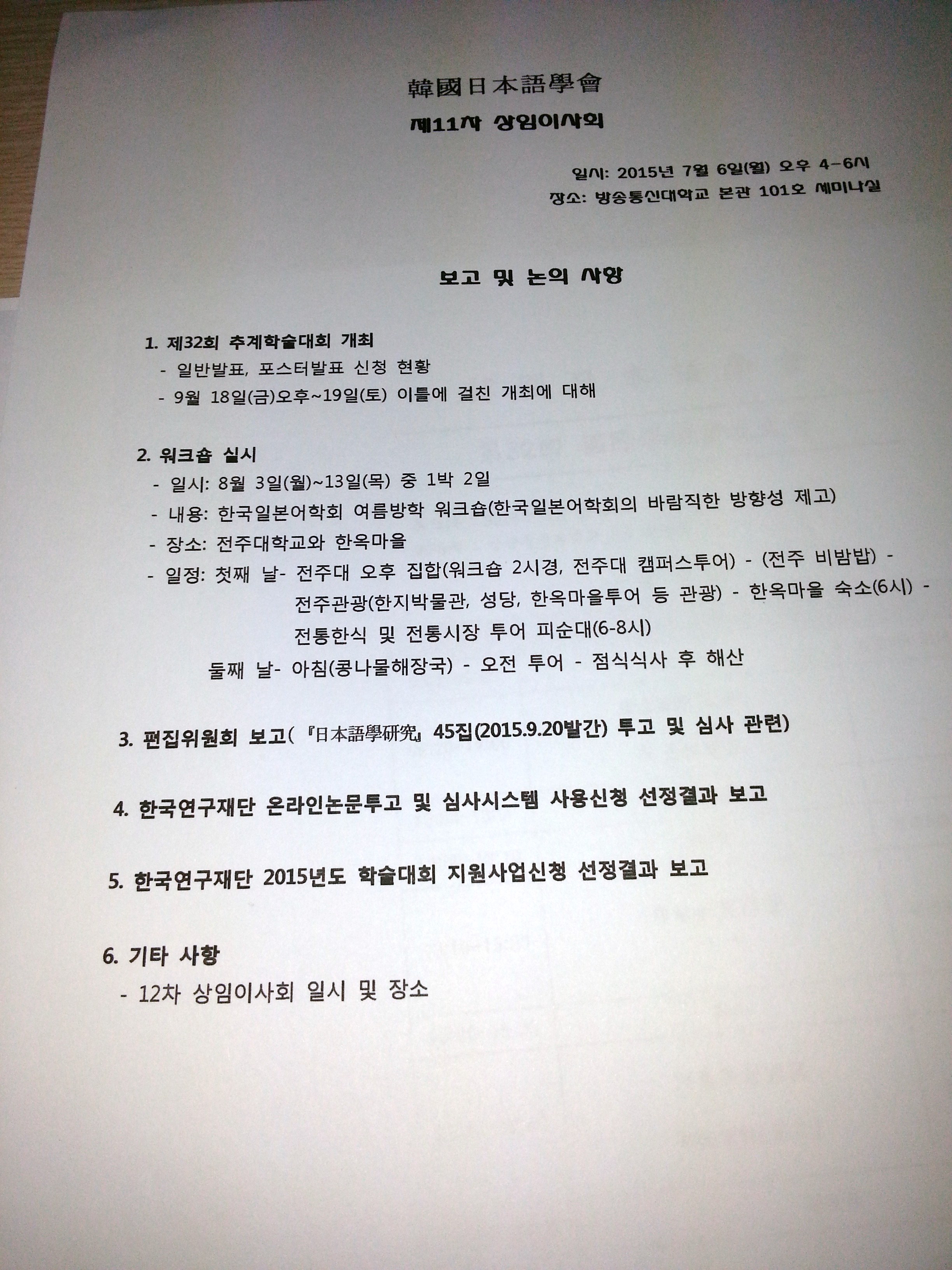2015년 8월6일 7일 한국일본어학회 2015년 여름 상임이사회 워크숍