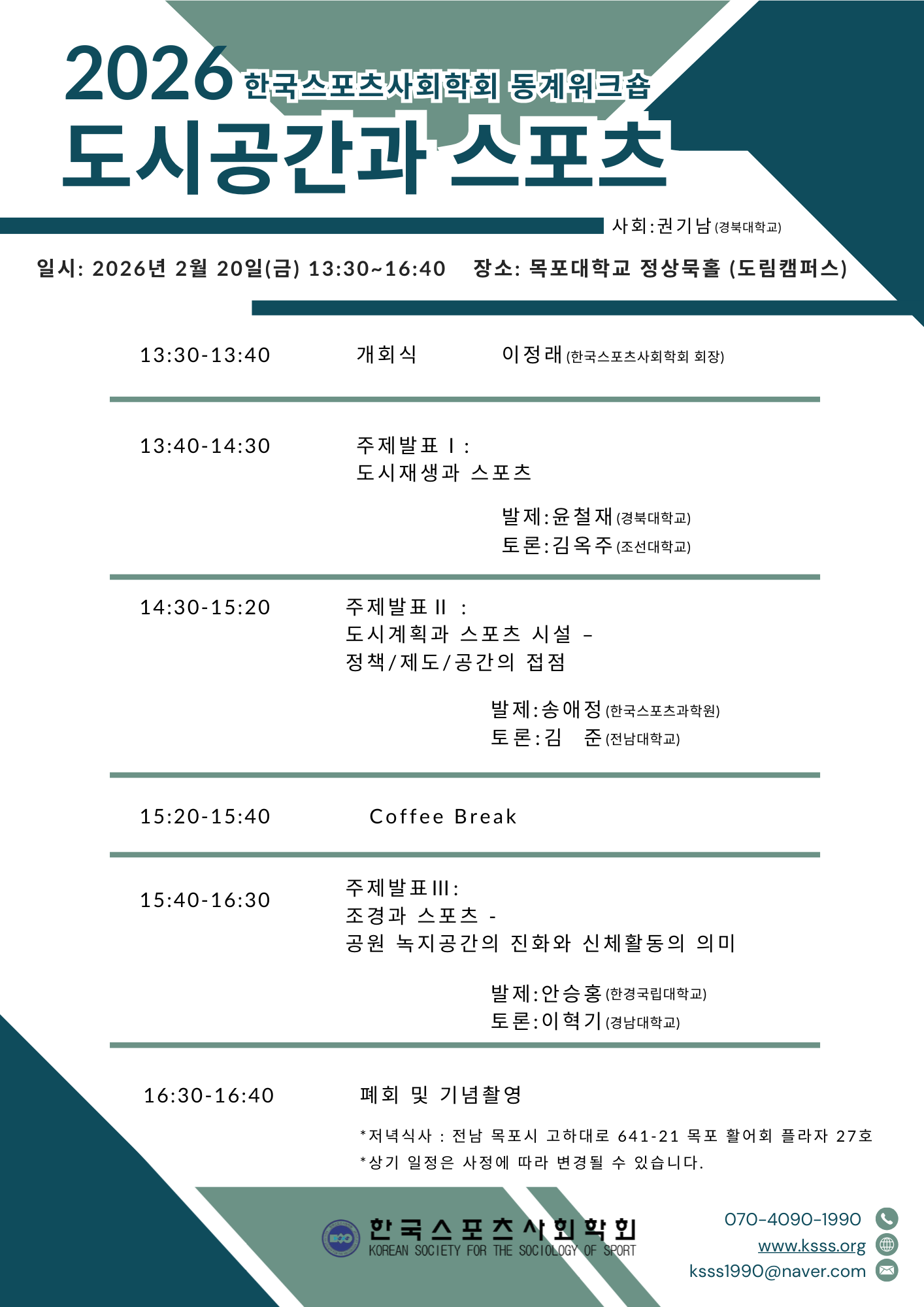[학술대회]2026 한국스포츠사회학회 동계워크숍 및 정기이사회 개최안내