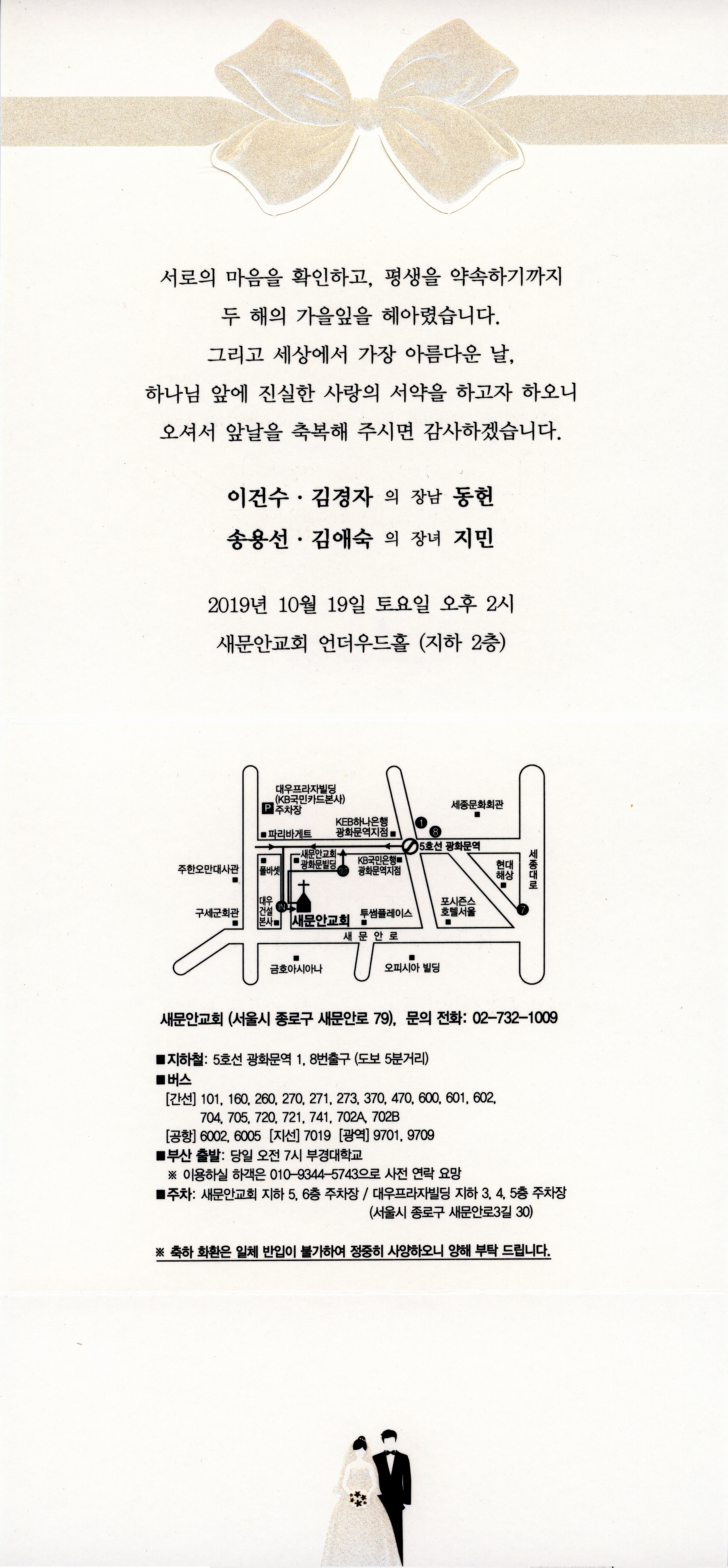 송용선(부경대학교 지구환경과학과 명예교수) 회원의 자녀 지민양의 결혼식이 아래와 같이 있사오니, 축복해 주시기 바랍니다.
