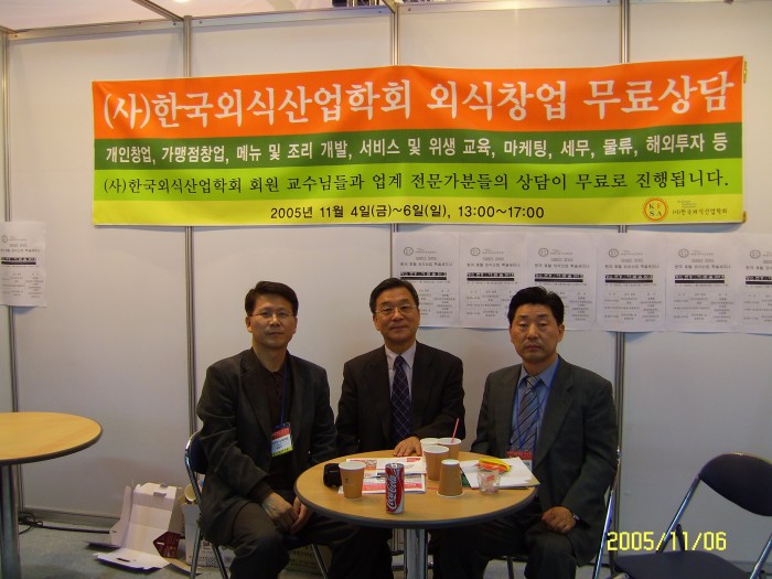 2005. 11. 4-6일까지 COEX에서 개최된 SIRES 2005 중 11월 6일에 참가한 김헌희 회장, 이대홍 교수, 그리고 이용기 교수의 사진입니다.