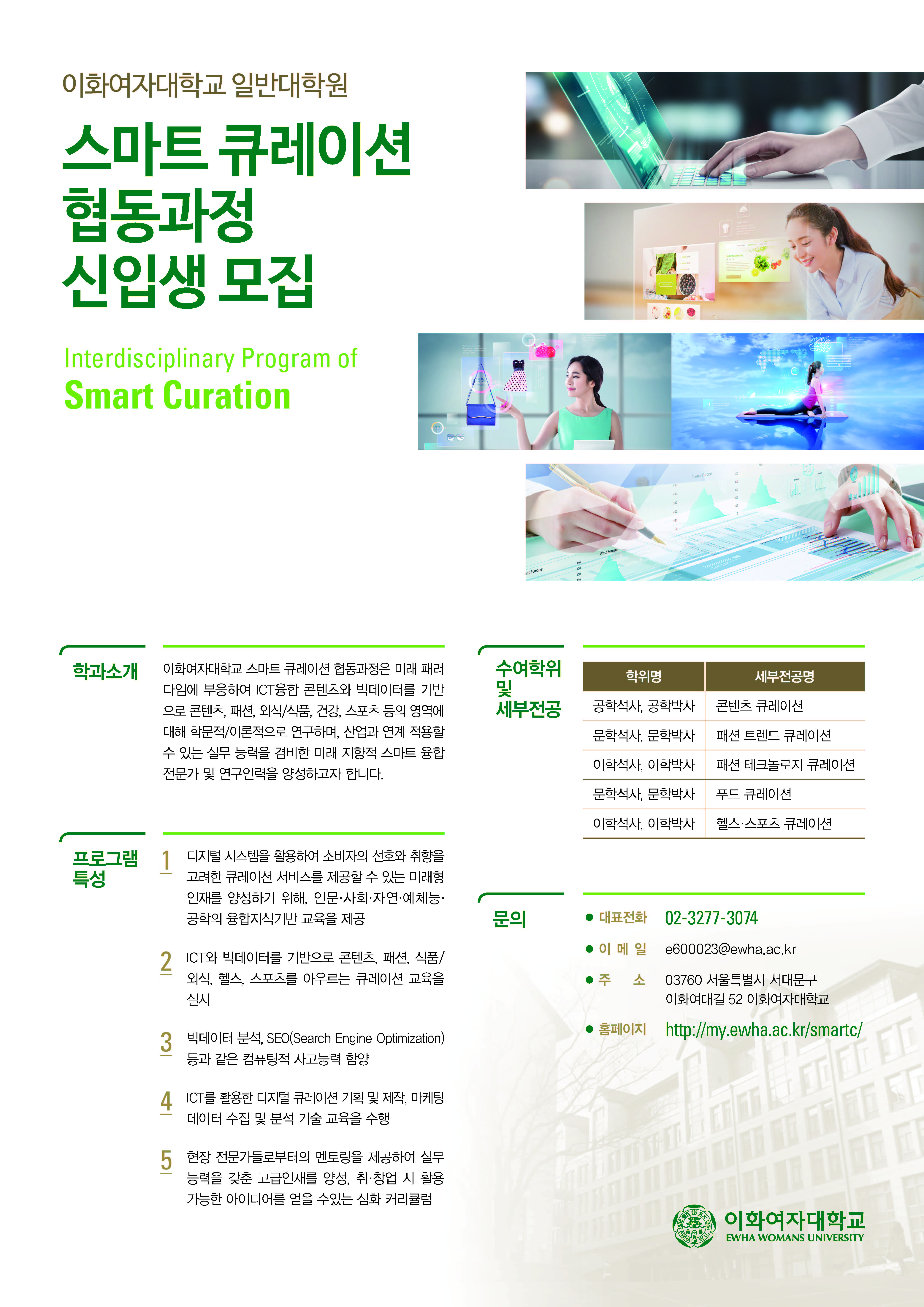스마트큐레이션 협동과정에 대한 자세한 내용은 포스터와 홈페이지 (http://my.ewha.ac.kr/smartc/)를 참조해 주시기 바랍니다.