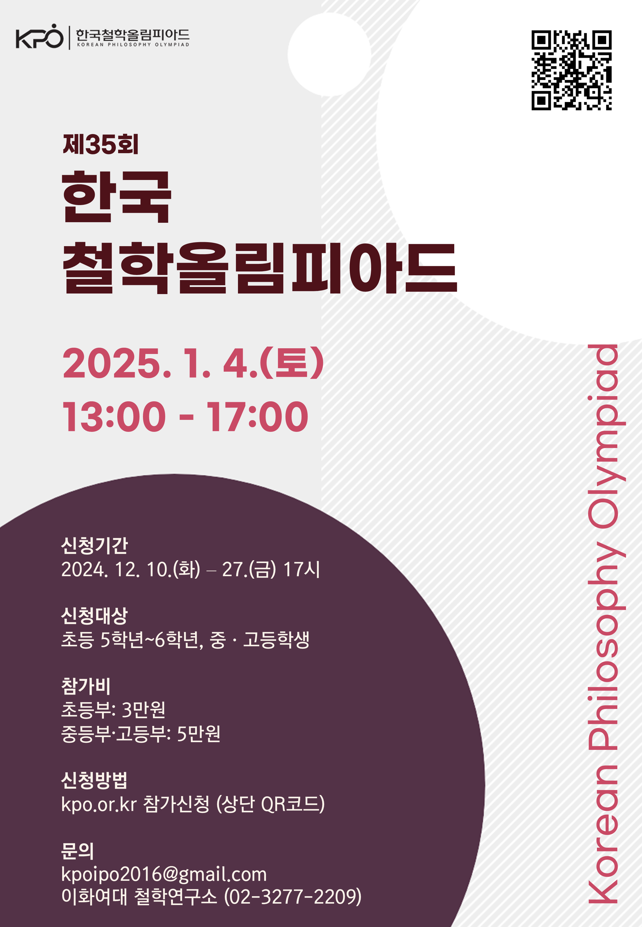 [한국철학회 철학올림피아드 위원회/이화여대 철학연구소] 제35회 한국철학올림피아드(KPO), 제33회 국제철학올림피아드(IPO) 국내 예선 대회 안내