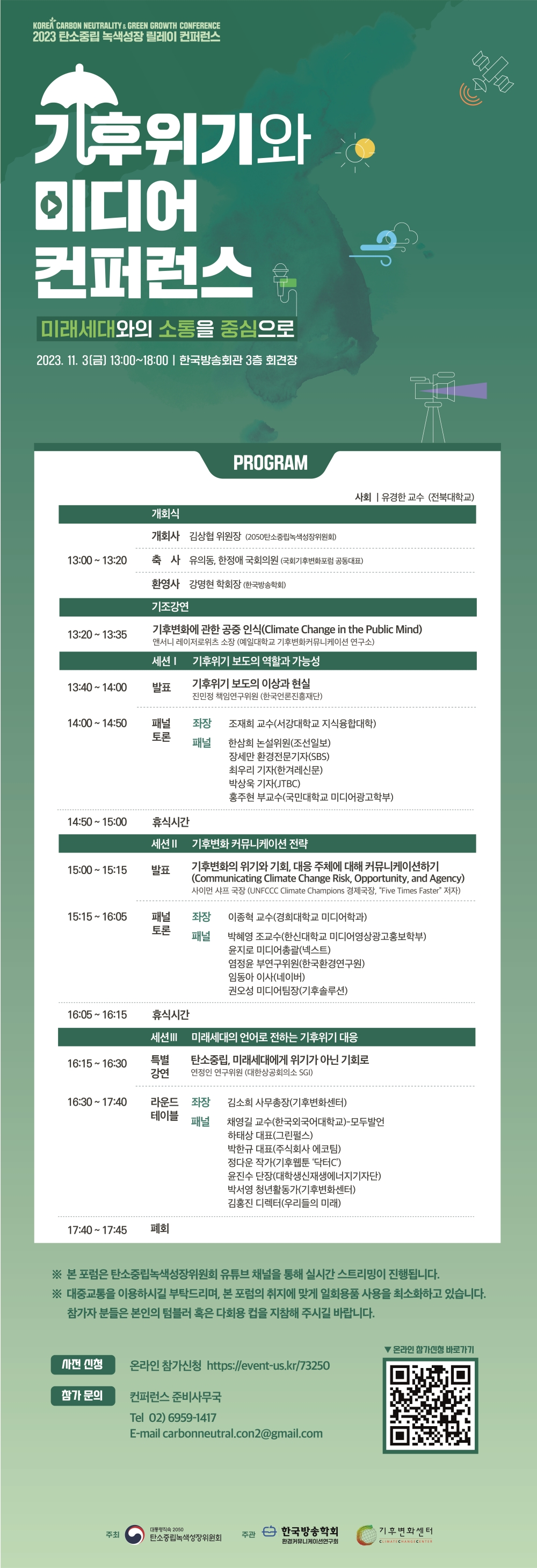 2. 한국방송학회 환경커뮤니케이션연구회와 탄소중립녹색성장위원회가 공동으로 주관하는 학술대회 <기후위기와 미디어 컨퍼런스>를 다음과 같이 개최하오니, 관심 있는 연구자분들의 많은 관심과 참여 바랍니다.